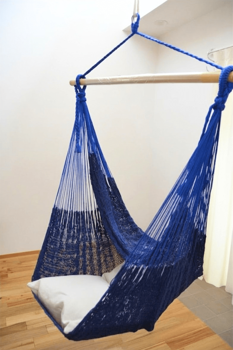 夏は背中がスースー涼しい新体験!脚、腿の裏側も熱がこもらず蒸れないハンモックチェア メキシコ・カリブ海地域 マヤ族の手編み制作