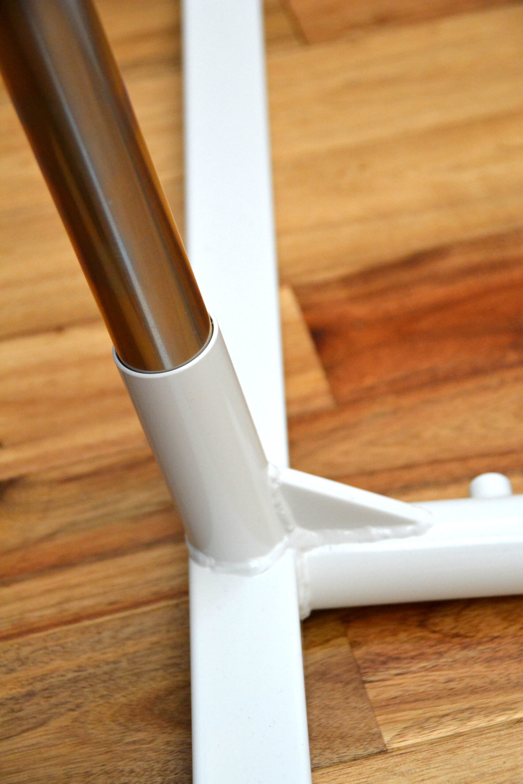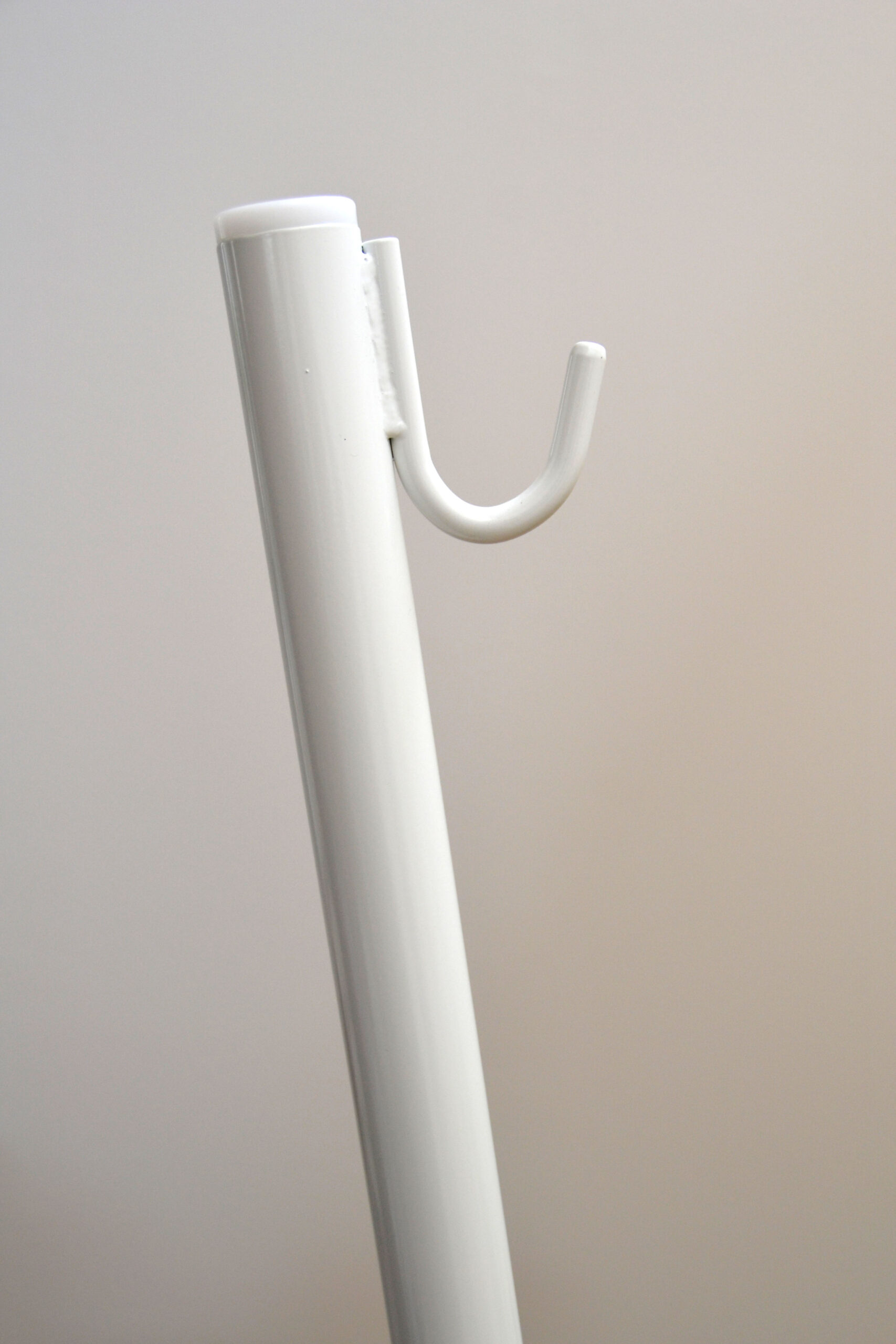 左右フック付きポール、および土台 : スチール、粉体塗装(ホワイト、ポリエステル系)