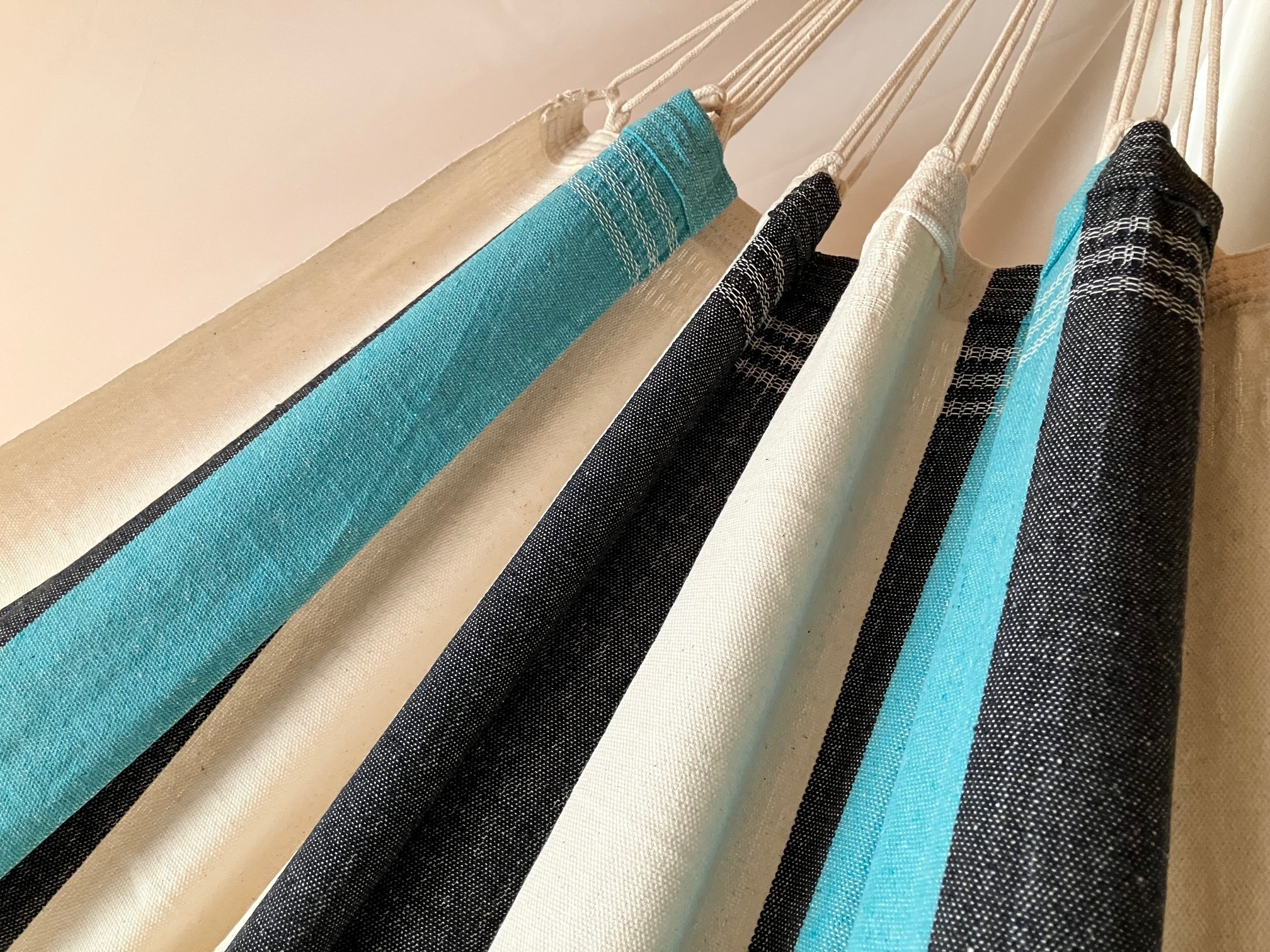 ブラジル産コットンを使用したハンモック専用の布を織って制作しており、寝心地最高です!