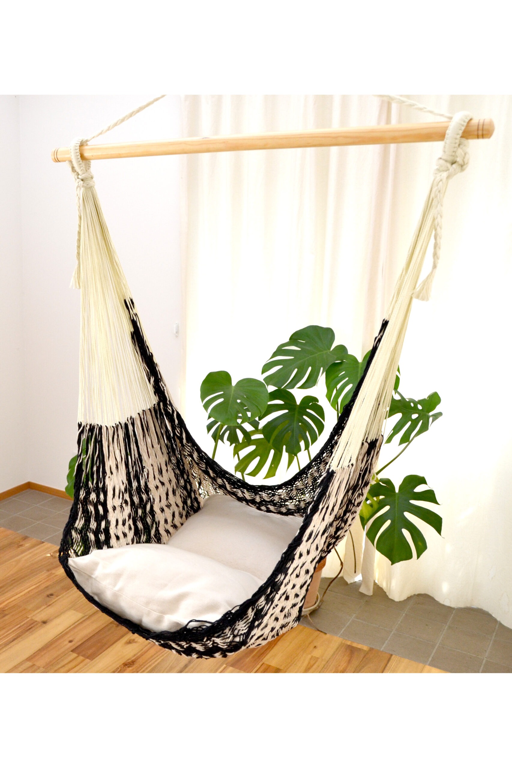メキシカンハンモックチェア(ネット) ラージ 「ブラック&ベージュ」